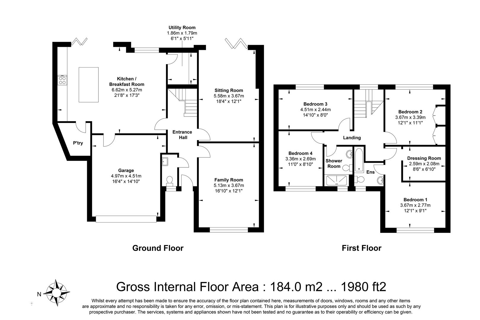 The impressive accommodation commences with a spacious reception hallway with high quality Karndean flooring incorporating ground floor cloakroom and doors off to the family room at the front of the house, sitting room to the rear with bi-fold doors to garden, a quite superb kitchen/diner with large central island unit with seating for four, bespoke hand-crafted fitted kitchen cabinets with contrasting working surfaces, walk-in shelved pantry, separate utility room with further fitted cupboards and work surfaces.